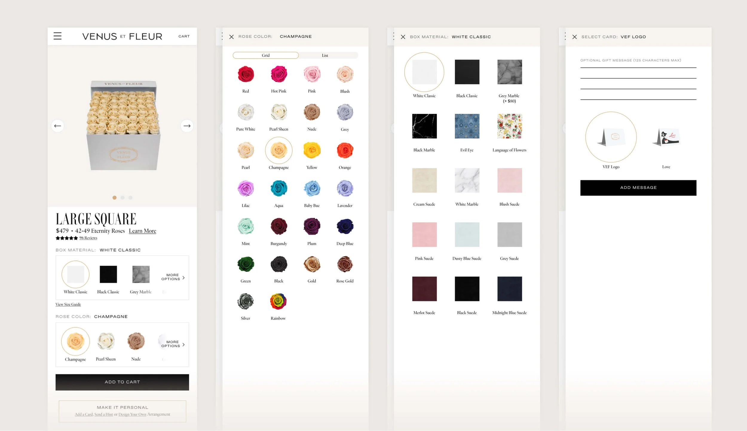 At King & Partners, I worked closely with the Creative Director to develop a timeless brand, inspired by classic heritage. Looking to expand beyond the floral industry, we delivered and implemented a new lifestyle brand approach that seamlessly joined the romance with modern sophistication in all of Venus et Fleur’s touchpoints. The challenge was crafting a website experience that could clearly showcase a diverse product range, complex product variants, and customizable gift options — all in a way that felt effortless and intuitive for the user.